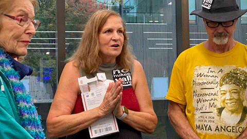 KANSAS CITY 10/25/23: Shock. The courtroom, with about 25 supporters of the defendant, was steeled to hear Judge Anne LaBella say, “Guilty.” The case had been heard. All indicators were that Ann Suellentrop, who pleaded not guilty to committing the crime of trespass on May 29, Memorial Day, at the massive KC MO nuclear weapon production plant, would be declared guilty and most likely endure a lengthy appeal process. The prosecutor had repeatedly objected to Suellentrop’s statements and those of her one witness, retired lawyer Henry Stoever, and only once did the judge not sustain the objections.