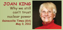 "It is terribly irresponsible of the NRC to rush this risky reactor project through even as Japan continues to grapple with the unstable condition of the wrecked Fukushima reactors," says Nuclear Watch South Coordinator Glenn Carroll. "There are many concerns with nuclear energy even beyond those raised by the Fukushima catastrophe. We hold out hope that Southern Company and Georgia Power may yet come to their senses to recognize the tangible successes of wind and solar power and decide to abandon dead-end, out-moded nuclear power.