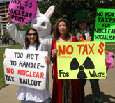 ALICE is none other than Nuclear Watch South's Leslie Minerd who is joined by White Rabbit Tom Clements (Friends of the Earth), Red Queen and SC Sierra Club Chair Susan Corbett, and Tea Party Host Extraordinaire, the Mad Hatter, Tim Liszewski of Carolina Peace Resource Center. Alice and Crew crashed the 2008 Tea Party rally in Columbia, SC, and put tax-funded nuclear loan guarantees in front of the Tea Partiers and the local media.