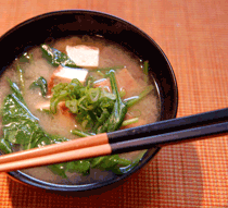 tamari soy soup, wakame, kombu and other seaweed, Hokkaido pumpkin, and sea